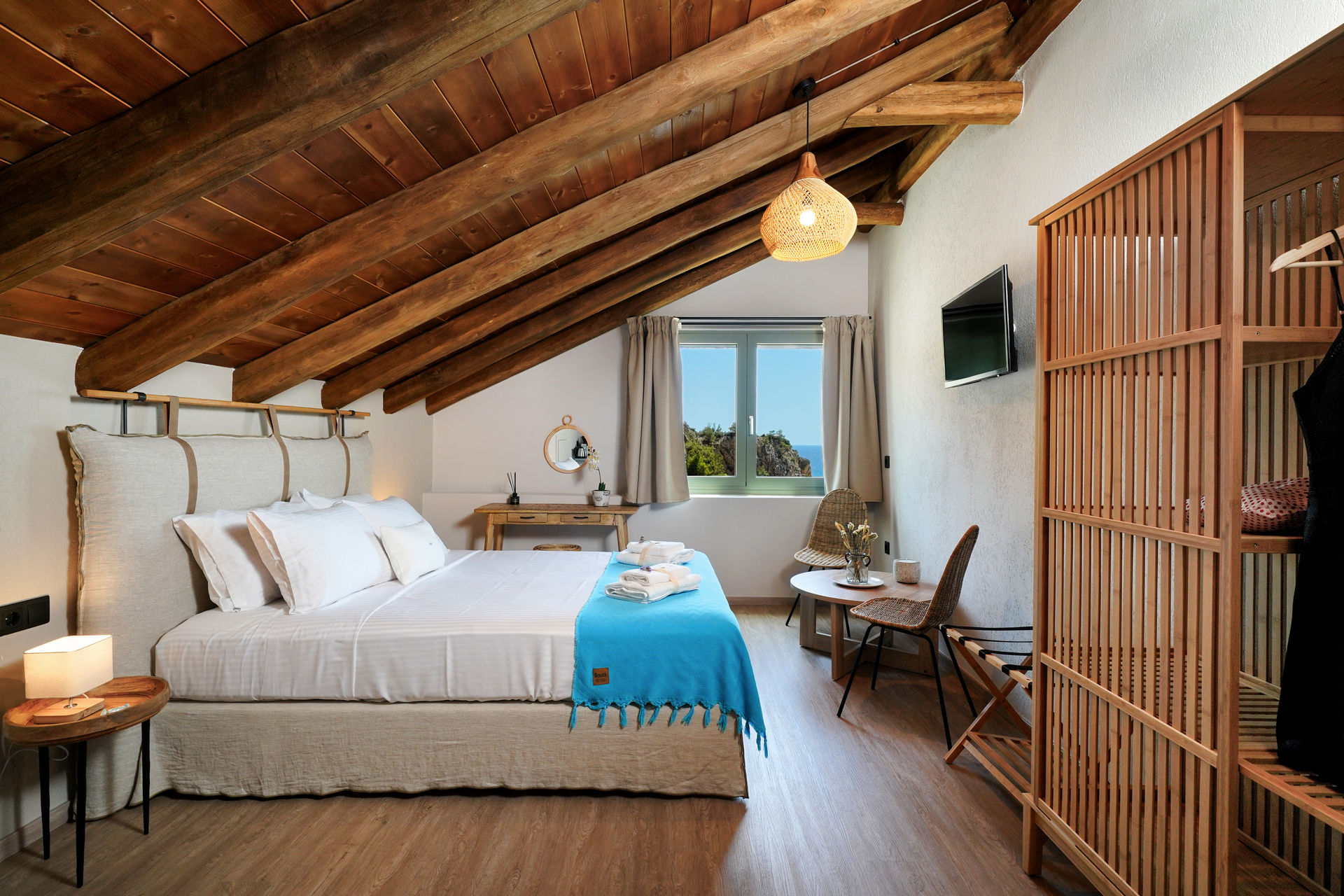 Designed with an aesthetic that inspires relaxation, harmony, balance and enjoyment, the tastefully-furnished rooms, balconies, and common areas are carefully built following Anasa Thalassas’ dedication to environmental sustainability. Anasa Thalassas eco-hotel is the perfect choice for your beach vacation.